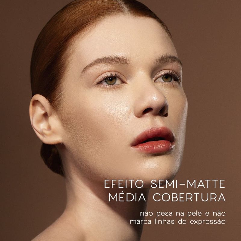 acabamento semi-matte e cobertura média, deixa a pele bem uniforme e possui