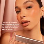 vitamina E, cera de candelila e óleo de semente de jojoba, ele tem uma fórmula vegana com textura cremosa e confortável, que além de tudo, é fácil de aplicar e esfumar.