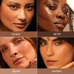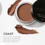 cor Coast, por exemplo, é um marrom intermediário mais escuro, que deixa as peles médio-escuras com um bronze matificado perfeito para o dia a dia.