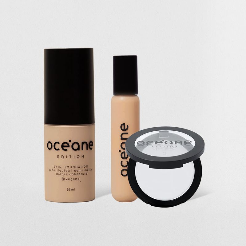 O Kit Base Líquida 110F + Corretivo Líquido Fair + Pó Compacto Translúcido conta com 3 produtos da Linha Océane Edition perfeitos para criar uma pele perfeita na sua maquiagem. a Skin Foundation é uma base semi-matte de média cobertura e acabamento suave. Isso significa que ela uniformiza o tom da pele sem pesar, não marca as linhas de expressão e corrige pequenas imperfeições. Possui longa duração para que você aproveite os seus melhores momentos. O corretivo Fair líquido possui longa durabilidade na pele, permitindo que a sua maquiagem se fixe por mais tempo com uma pigmentação incrível. Agora, vamos ao que interessa: as tonalidades! São 7 cores diferentes que se adequam a diversos tons de pele. Assim, fica mais fácil encontrar a mais indicada para o seu rosto. O Pó translúcido Retouch My Glam permite criar uma maquiagem blindada que dura muito tempo e vai transformar a sua produção. Tudo isso graças ao efeito Blur, que disfarça imperfeições, linhas finas e os poros dilatados na pele. Sem falar do acabamento delicado e sedoso, finalizando a make do jeito que você sempre quis.