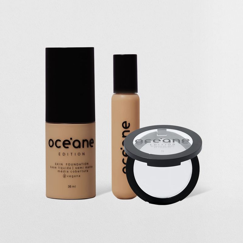 O Kit Base Líquida 230L + Corretivo Líquido Light + Pó Translúcido Océane Edition contém: