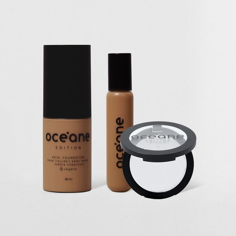 O Kit Base Líquida 400M + Corretivo Líquido Medium TAN + Pó compacto Translúcido contém:
