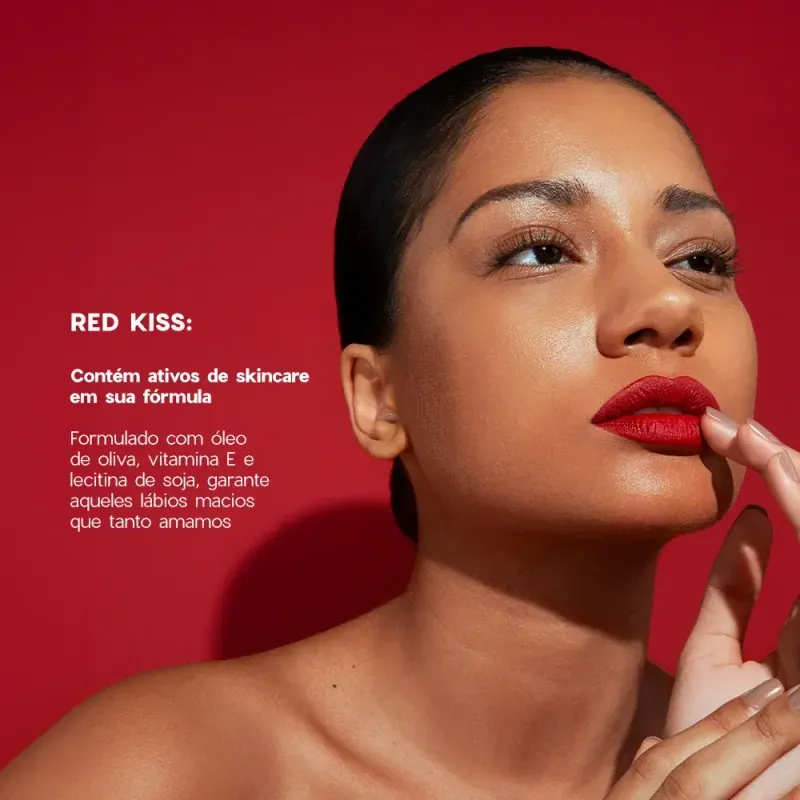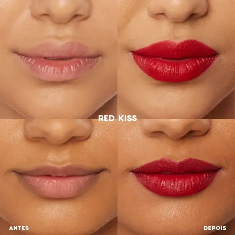 cor Red Kiss, esse batom vermelho intenso tem uma pigmentação poderosa. Além disso, o Mini The Lipstick tem textura semi-matte e longa duração Ele é ótimo para criar uma maquiagem impactante para você arrasar por aí. Definitivamente, um presente que todo mundo vai amar!