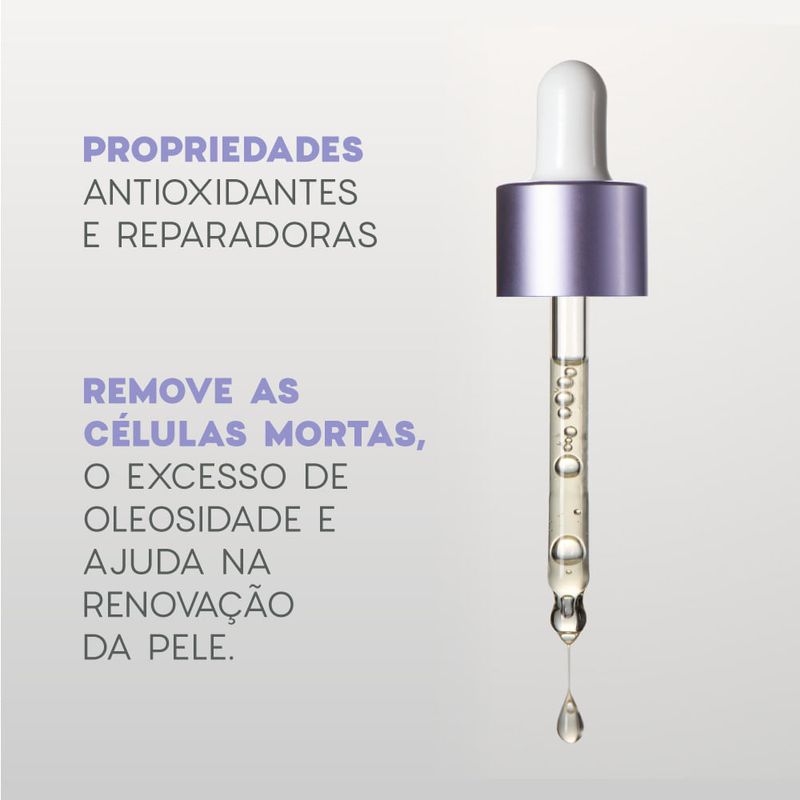 esfoliação suave, que ajuda a remover as células mortas e o excesso de oleosidade, promovendo a renovação natural e uniformização da tonalidade da pele.