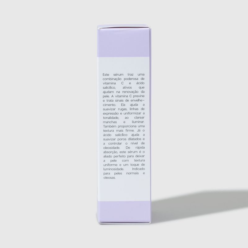 Sérum com Vitamina C e Ácido Salicílico, é ideal para peles normais e oleosas. Com ativos que ajudam a controlar a produção de sebo, ele deixa a sua pele com textura uniforme e um toque de luminosidade.